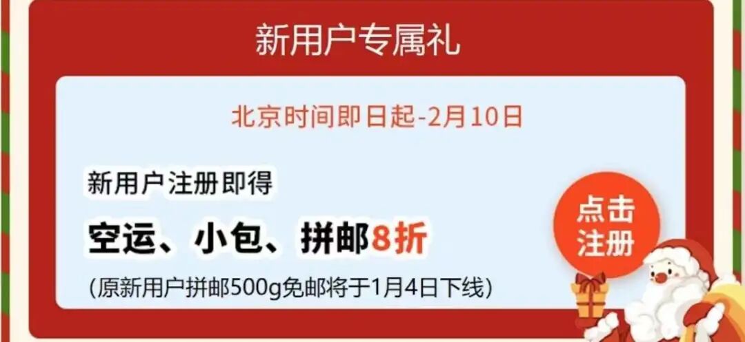新人在以下活动时间注册,还可领8折券,小包、空运快线、拼邮都能用!!!