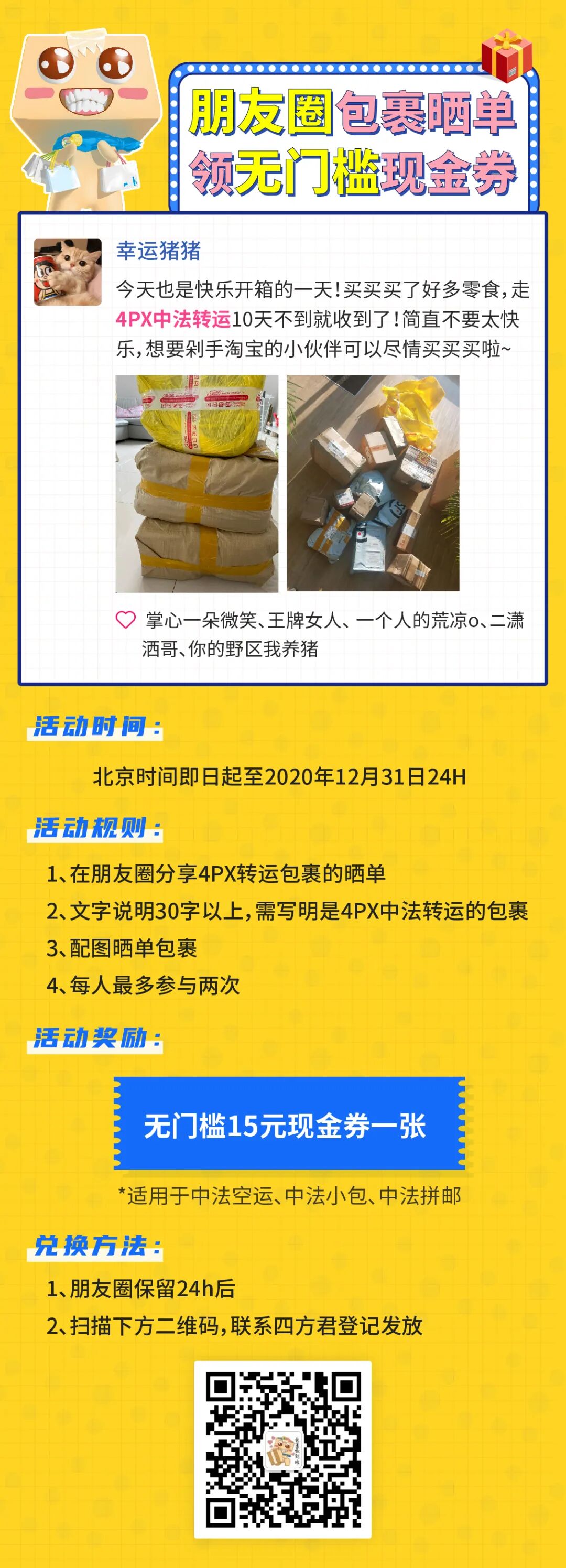 朋友圈晒单领无门槛优惠