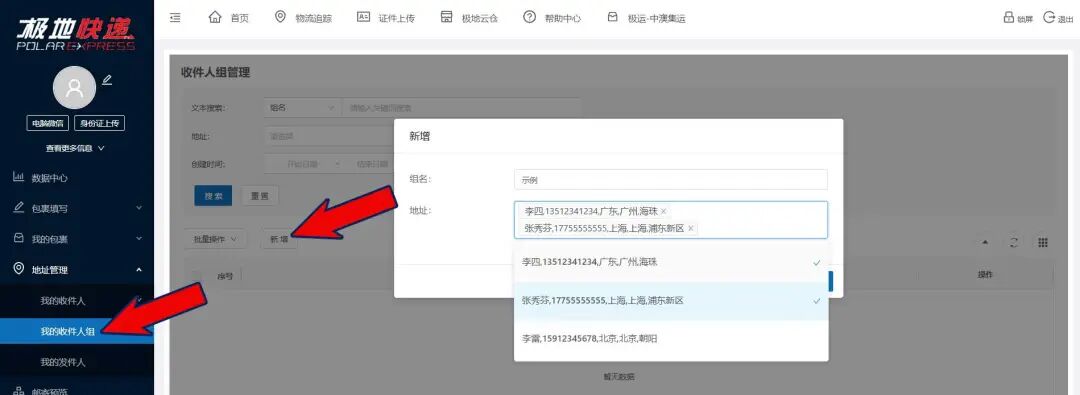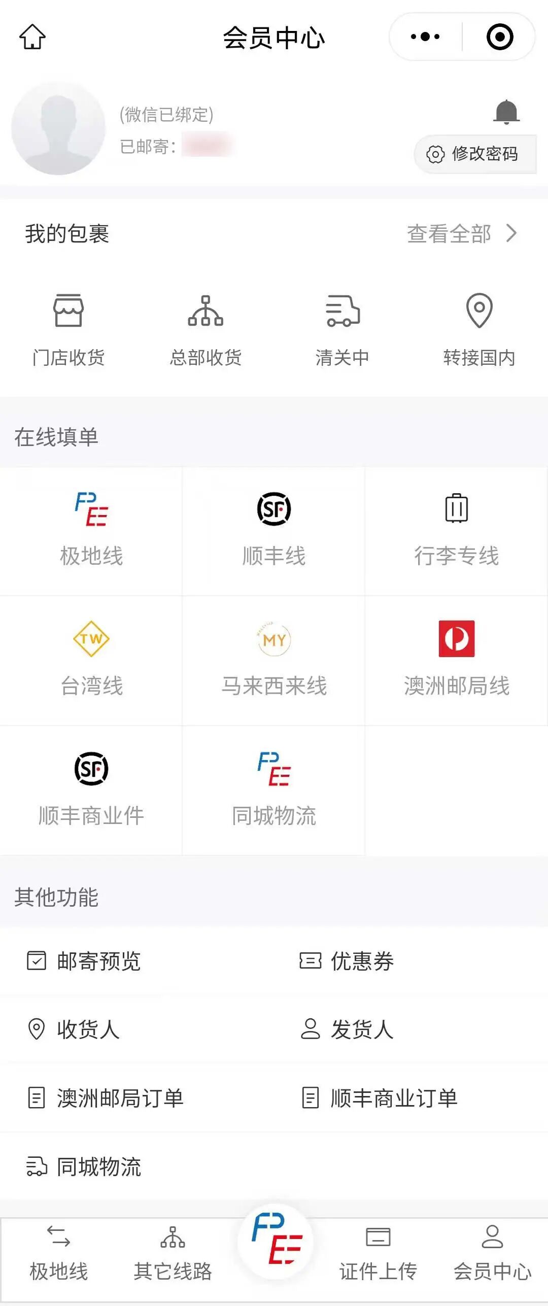 * 发件人微信登录极地快递会员中心,即可完成微信绑定,享受极地消息提醒: