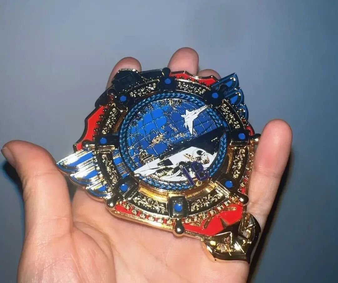 它的背面刻有飞翔之翼和航母信息标识,线条简洁大气。带有磁吸贴,可吸在铁制品上。