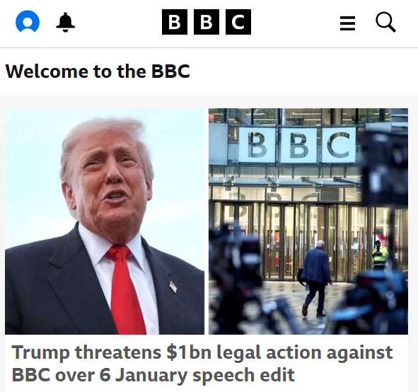 BBC报道截图:BBC剪辑特朗普1月6日演讲引发争议,特朗普扬言10亿美元起诉