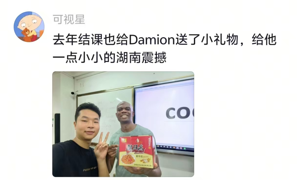 许多网友纷纷回想起自己给外教送中国特色小礼物的经历:无论是有趣的锦旗,还是家乡特产,背后都是中国学生的最真挚的心意。