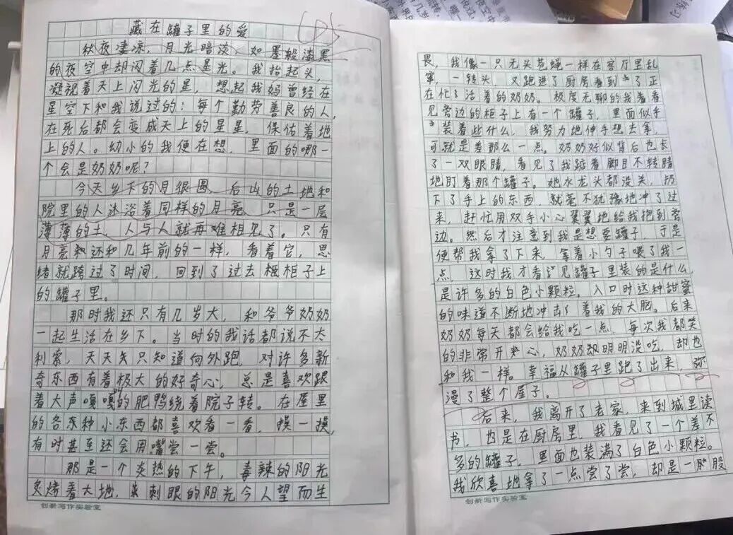Teacher Tong was deeply moved while grading the essay. Before posting it online, she verified its authenticity with Long and his parents, even running it through plagiarism-checking software. "His parents immediately mentioned the sugar jar incident when I brought up his grandmother," Tong said. "The details matched. This isn't the first time he's written about his grandmother. He has the writing skill."
