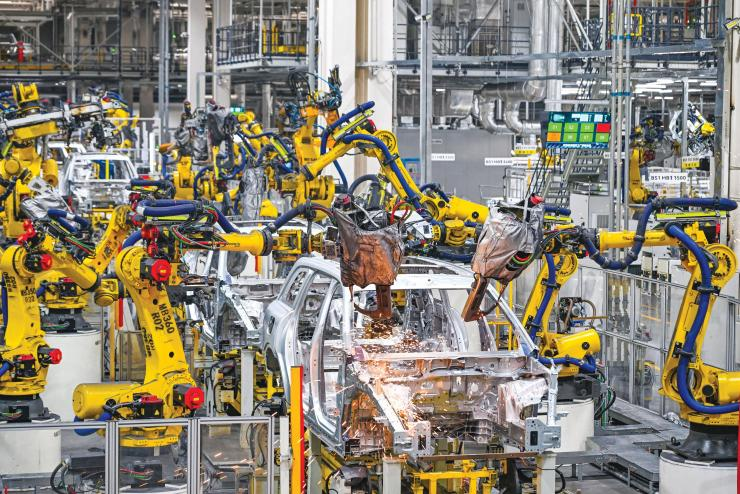 随着汽车智能化程度的提高,每辆车所需的芯片数量也大幅增加。一辆燃油车大约需要600枚芯片,电动车则高达1600枚,图为汽车装配车间安装芯片等的场景。图源:新华社