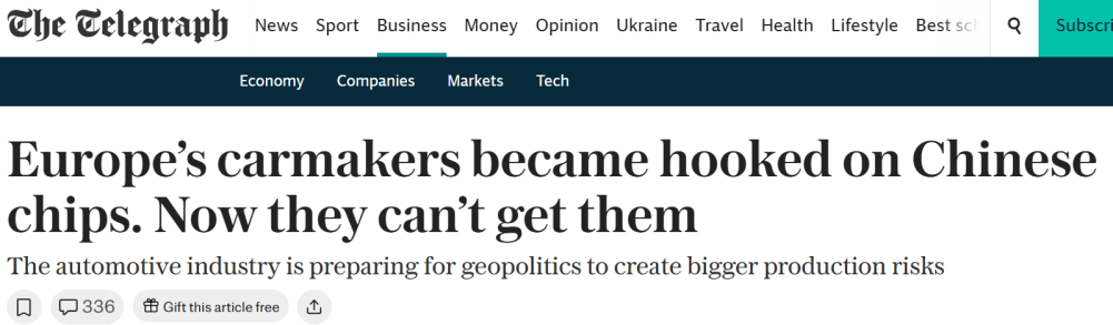 欧洲车企已经依赖中国芯片了,但目前却无法获得这些芯片