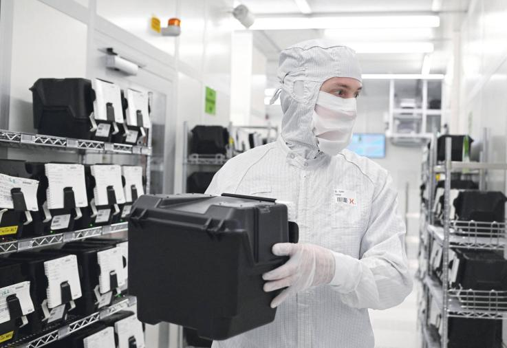 2024年6月27日,在德国汉堡的荷兰半导体公司安世半导体(Nexperia)生产线上,一名员工正在工作。图源:路透社