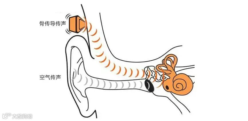 气传导(常见入耳、头戴式耳机):空气传导→鼓膜振动→听小骨→耳蜗毛细胞→听神经。