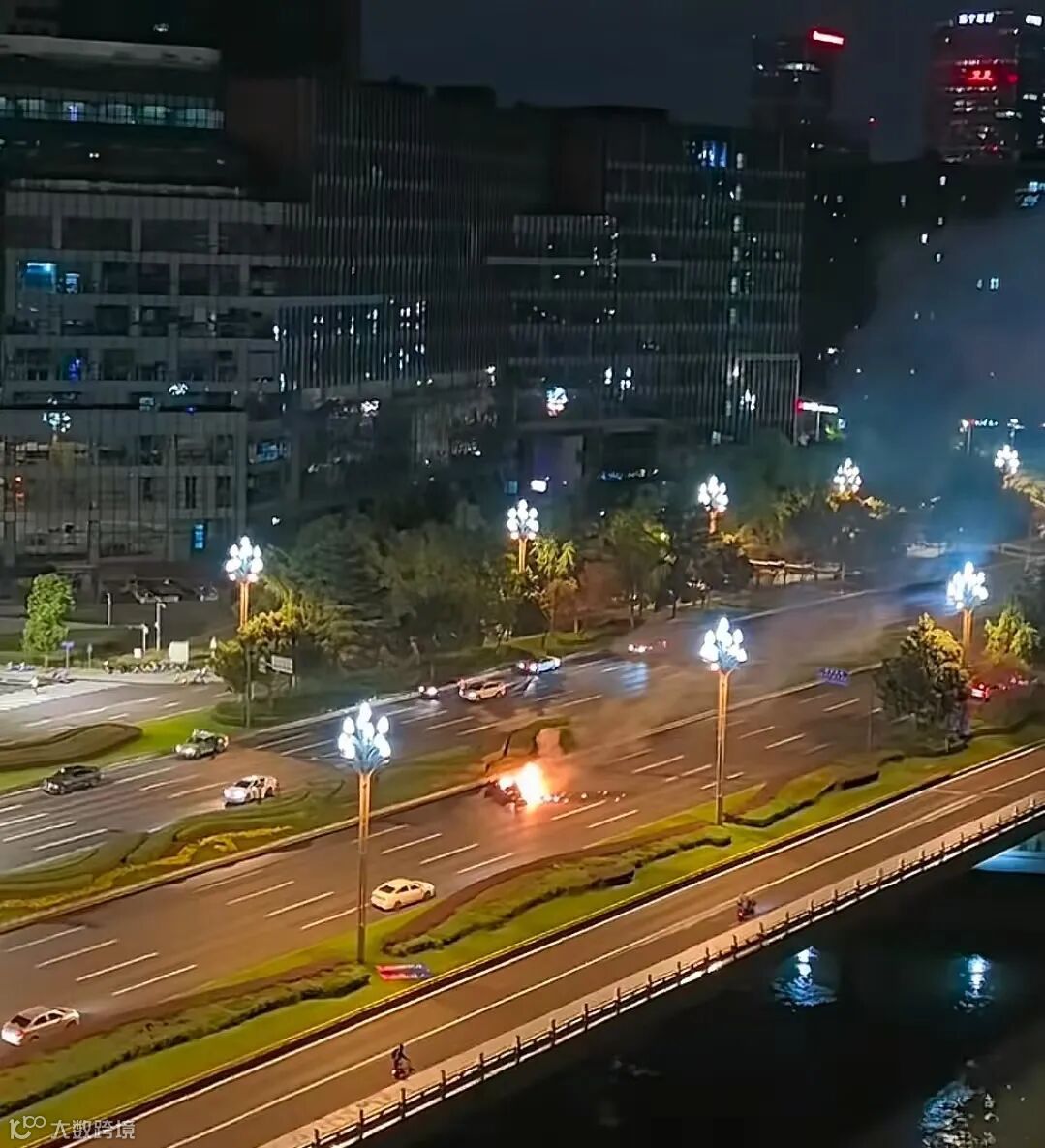 随后车辆超速失控,先与绿化带发生碰撞,随后翻滚至对向车道并起火。一名车主的行车记录仪显示,车辆碰撞前从右侧飞速驶过,碰撞后迅速燃起大火。