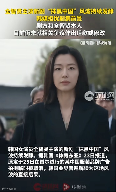值得一提的是,韩国女演员全智贤主演的新剧《暴风圈》同样引发了广泛争议(此前报道:全智贤代言广告被撤)。