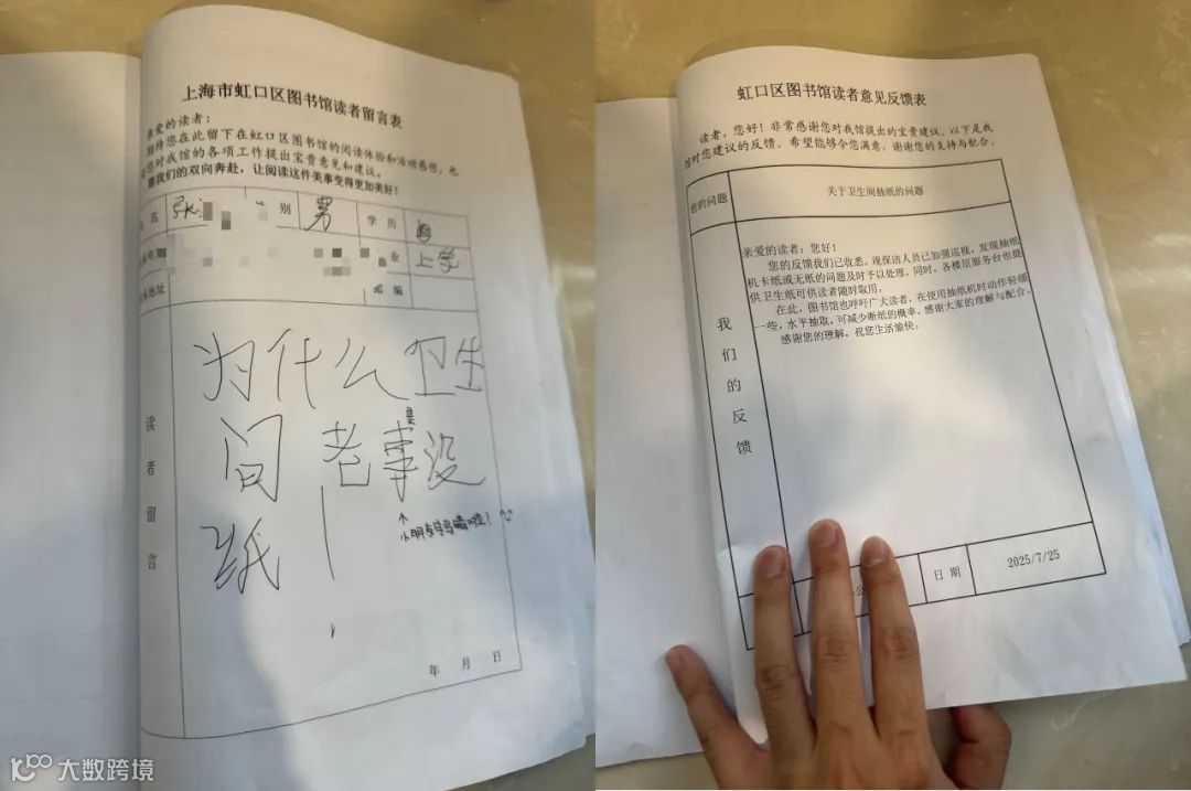图书馆反馈:“保洁人员已加强巡视,各楼层服务台也提供卫生纸供读者随时取用。”
