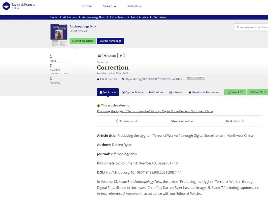 目前,出版社的态度还是积极的,这对于新疆和西方学术平台来讲都很罕见。西方涉疆抹黑不再是任意存于西方学术期刊,而是得到了及时的纠正。