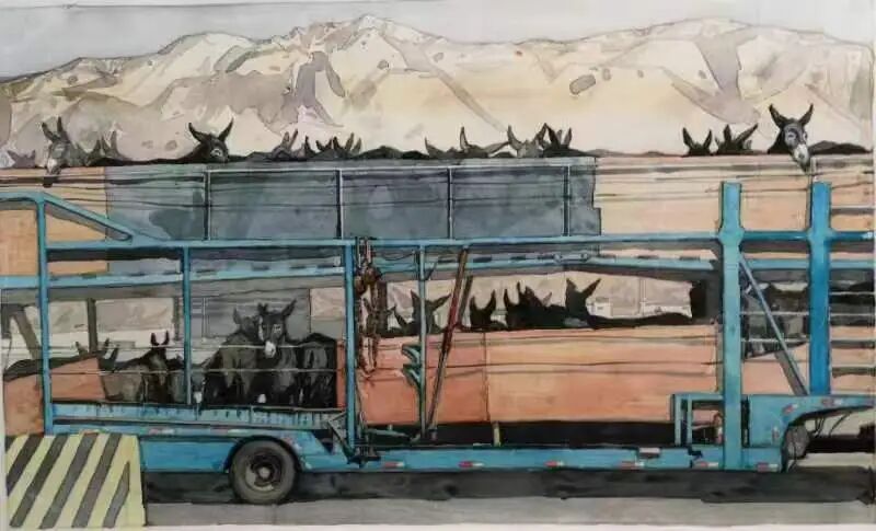 “这个解读就显得非常可笑,因为在这张作品里面,本身就没有人物出现。我画的是运输的车辆,毛驴的视线在往外看的时候,暗示着乡村振兴,一种新的发展。”