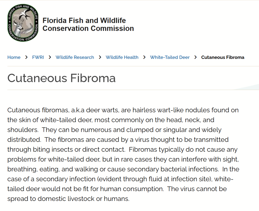 However, the condition is rarely fatal. The deer's immune system fights off the virus, and the warts shrink and disappear on their own after a few months. In rare cases, if the warts grow too large or become infected with bacteria, they can cause problems like blocking a deer's vision or ability to eat. Deer warts are not a new condition afflicting wildlife. Scientists believe it has been around for centuries, and studies on papillomaviruses affecting wildlife in the US go back to the 1950s.