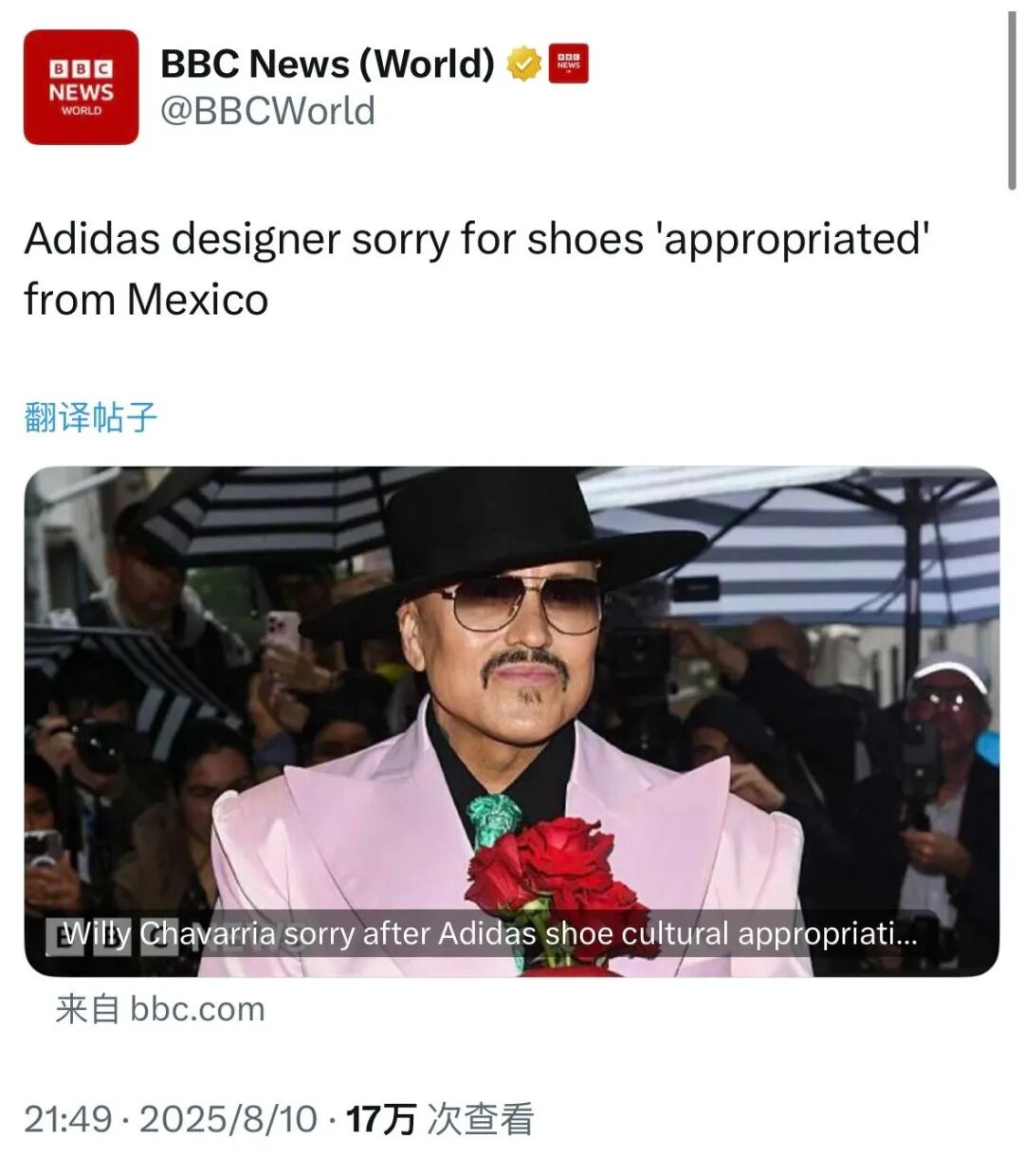 面对墨西哥方面的指控,阿迪达斯及该款鞋的设计师查瓦里亚目前已就此事公开道歉。