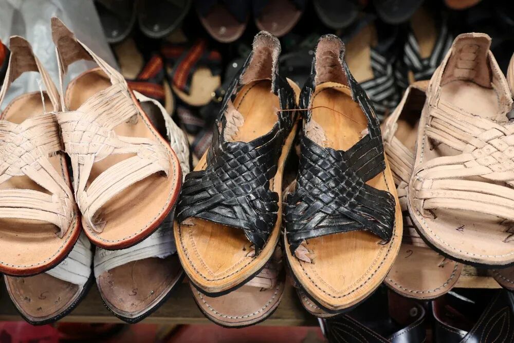 墨西哥瓦哈卡,市场上展示待售的“huaraches”凉鞋。 图源:美联社