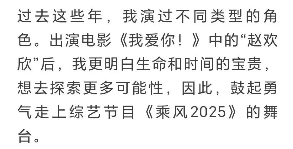 Having portrayed diverse roles throughout her career, Yip stated that playing "Zhao Huanxin" in the film Love Never Ends deepened her appreciation for life's value. This inspired her to join the reality show Sisters Who Make Waves 6 to explore new possibilities.