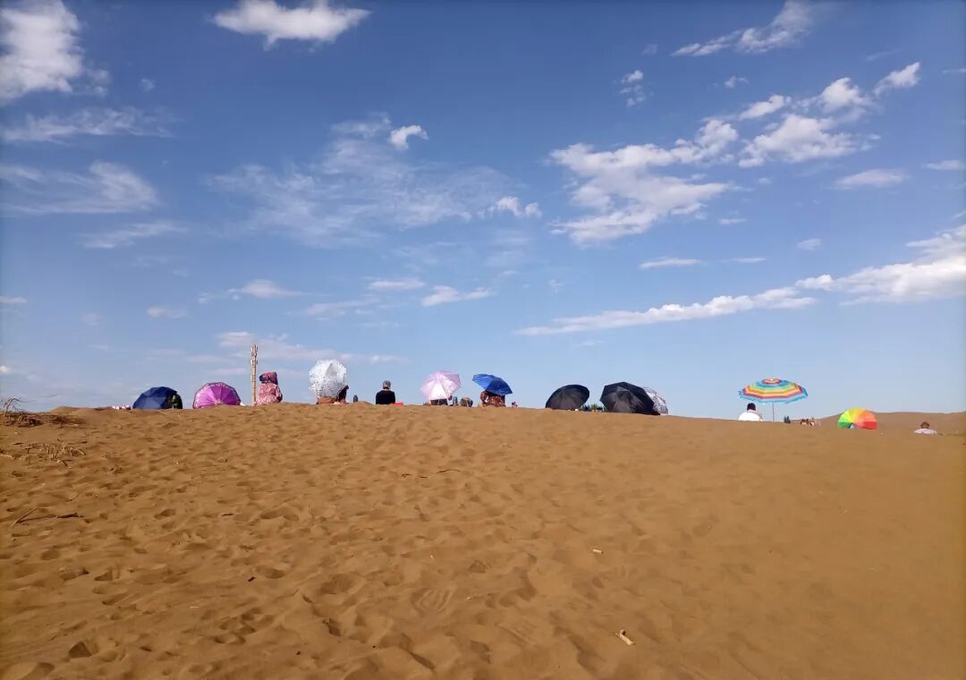 来自浙江的游客说:“买票进去自己找个坑埋就行,流程很简单……沙疗完全身都是沙子,脏兮兮的,但整个人感觉很轻松。”