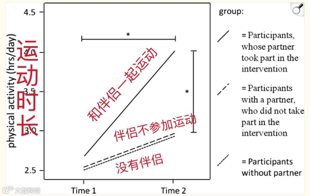 盖勒特的研究还表明,和伴侣一起锻炼能够长期保持较高的活动水平,而单身人士或其伴侣不积极参与锻炼的人则没有明显的改善。