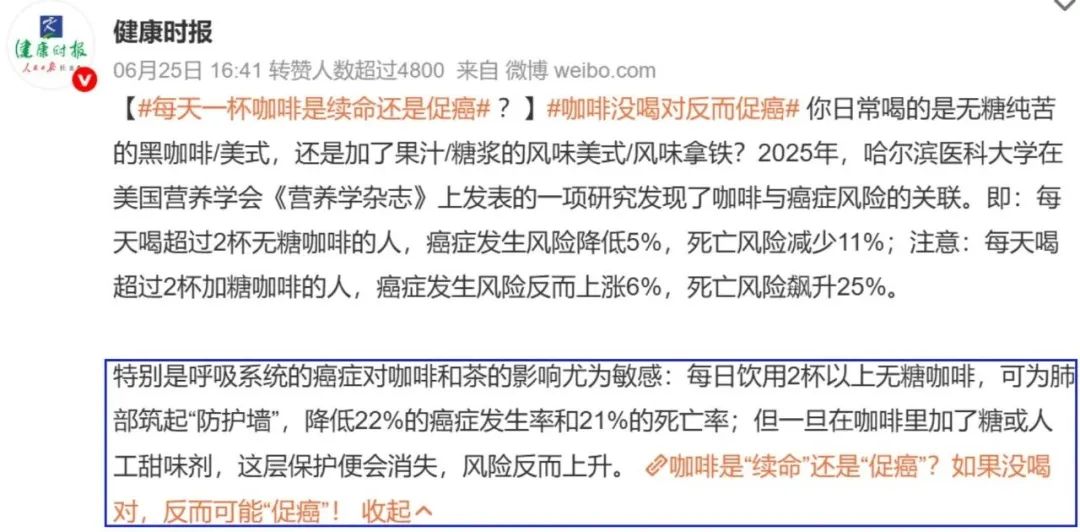 近日,话题“每天一杯咖啡是续命还是促癌”冲上热搜。