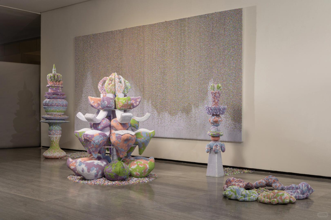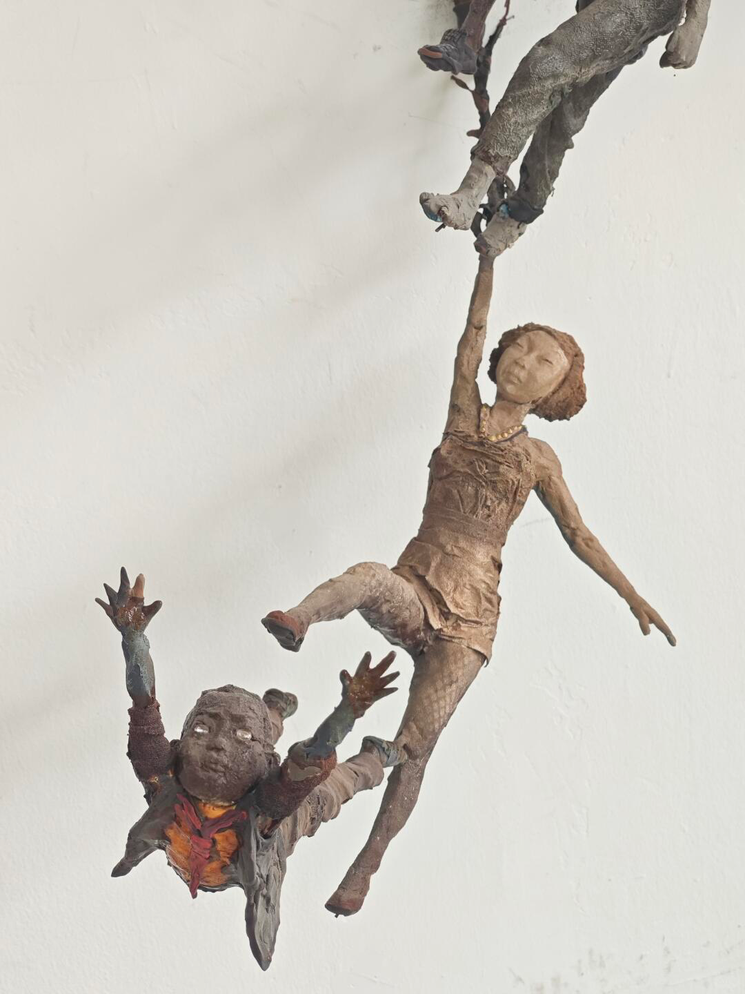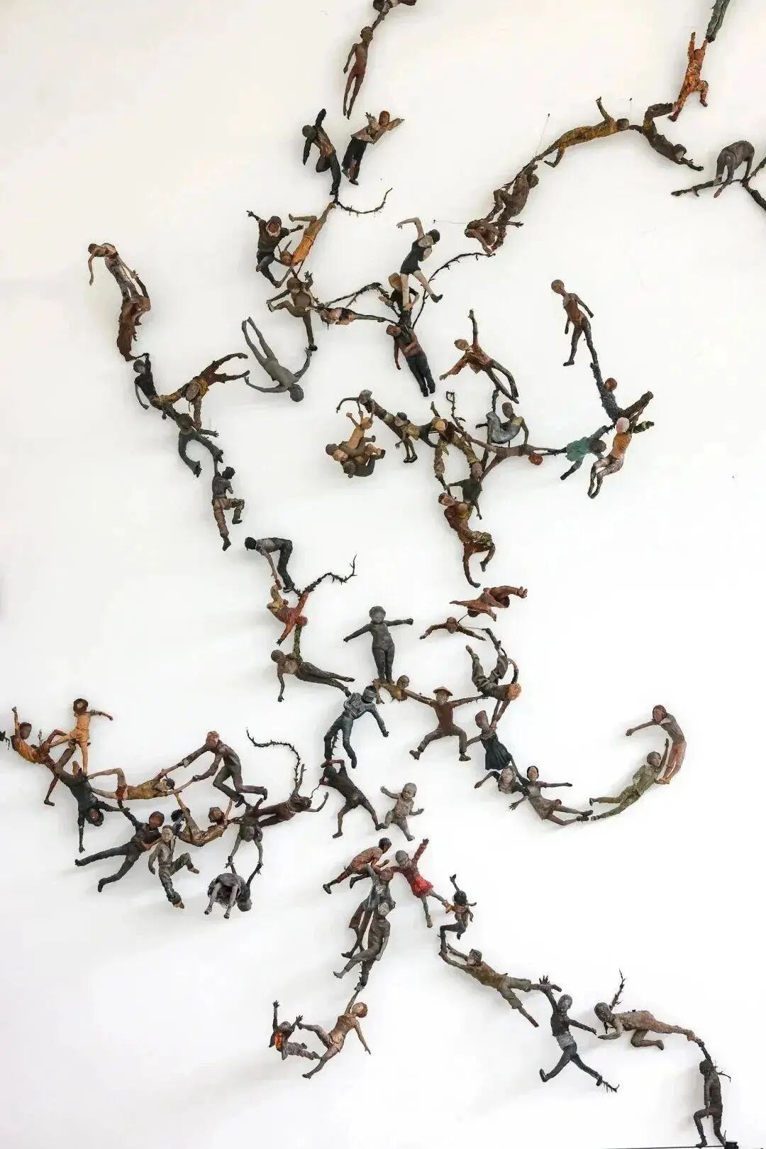 Other standout pieces at the exhibition include a sculpture that, at first glance, resembles a tangled mass of branches but upon closer inspection reveals itself to be composed of one hundred intricately detailed and uniformly styled miniature clay figures.