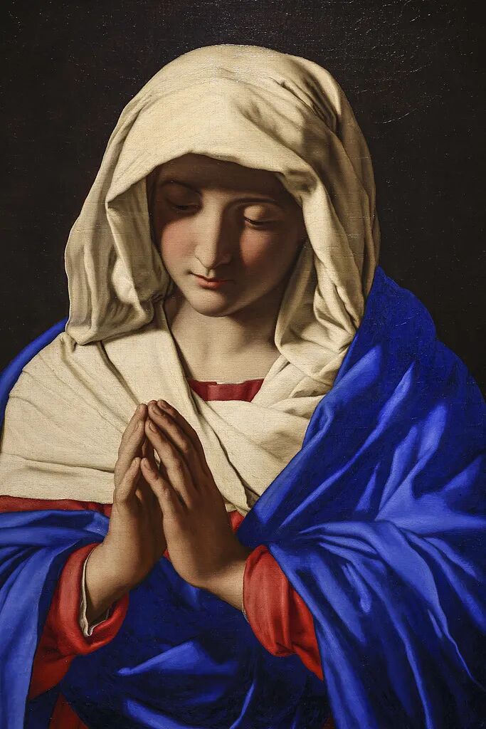 安琪的灵感源自17世纪意大利画家桑索费莱托的《祈祷的圣母》。