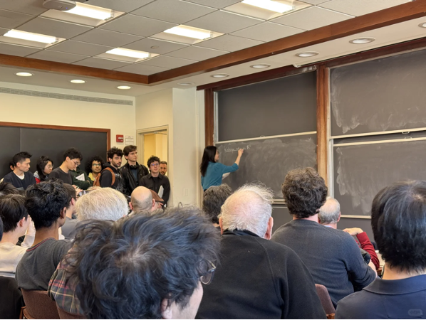 来听讲的有的是北大数院的研究生,有的是隔壁清华的学生,还有的是访问交流的学者。据他们所述,此次王虹教授所讲的课题是“挂谷猜想”——调和分析与几何学中的百年难题。