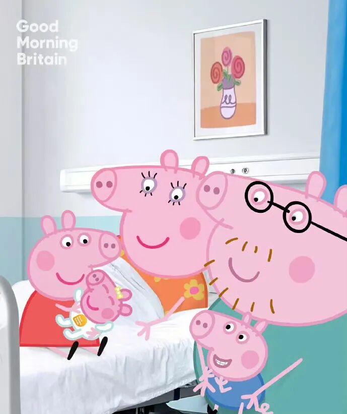 Evie Pig's birth was announced on the British TV show Good Morning Britain, with mocked-up pictures showing the Pig family at the Lindo Wing maternity ward at St Mary's Hospital in London.