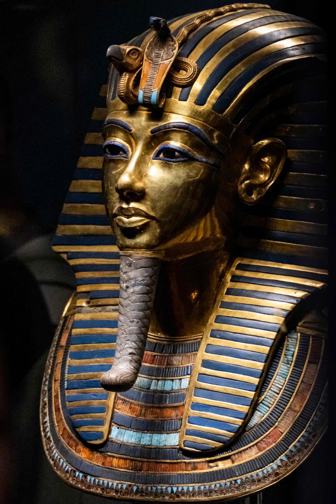 图坦卡蒙金面具,上饰有眼镜蛇和秃鹫 开罗埃及博物馆 法新社Amir Makar拍摄