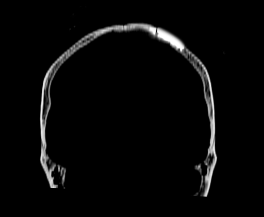 CT图像显示阶梯医疗无线侵入式脑机接口系统植入体与颅骨平齐