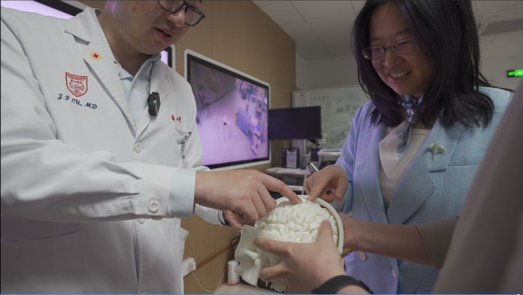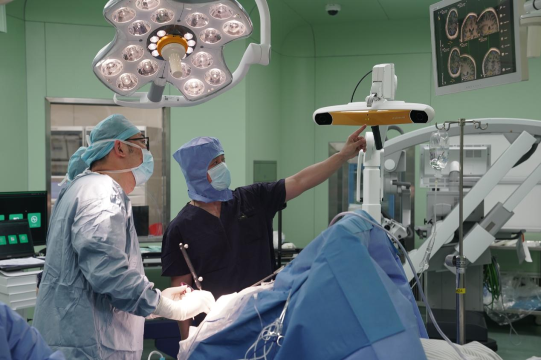 中国首例无线侵入式脑机接口系统前瞻性临床试验手术现场,吴劲松教授与路俊锋副教授做讨论