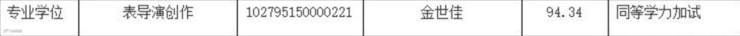此外,上戏此次公布的名单中还出现了另一位熟悉的名字——演员金世佳。资料显示,他报考的是“表导演创作”专业学位。金世佳毕业于上海戏剧学院2005级表演系本科,2008年因在都市青春喜剧《爱情公寓》中饰演陆展博一角而受到关注。