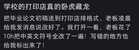 不仅如此,在见识过无数的论文之后,打印店老板的学术素养也丝毫不输科班出身,不仅帮你调格式,甚至还能帮你纠错查bug。