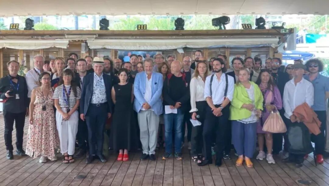 5月18日,数十位欧洲电影人齐聚戛纳海滨的一家咖啡馆,发表联合声明,谴责美国政府对文化的打压,并呼吁欧盟不要在与美贸易谈判中放弃对本地电影的保护。
