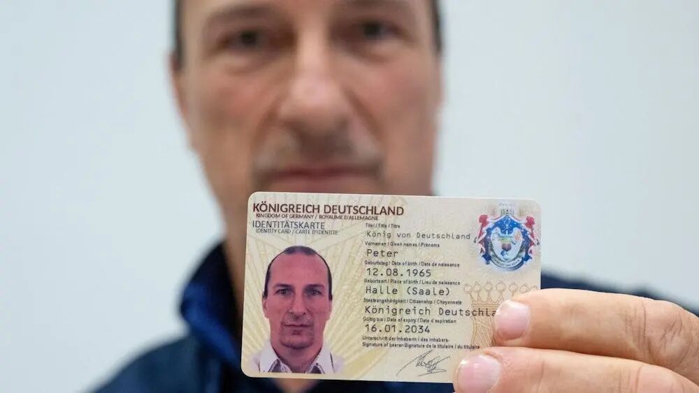 菲策克展示其自制的“帝国公民”身份证件 图源:德媒