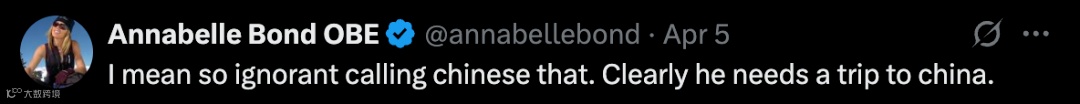 “我的意思是,这么称呼中国人真是太无知了。他需要去中国走走看看。”