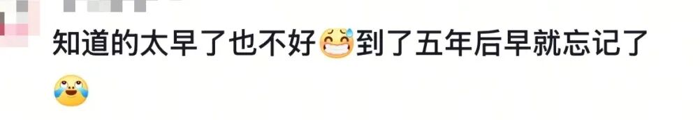 话题下,有网友表示:“我28了,你咋不早点发!”“到了五年后早就忘记了”……