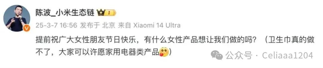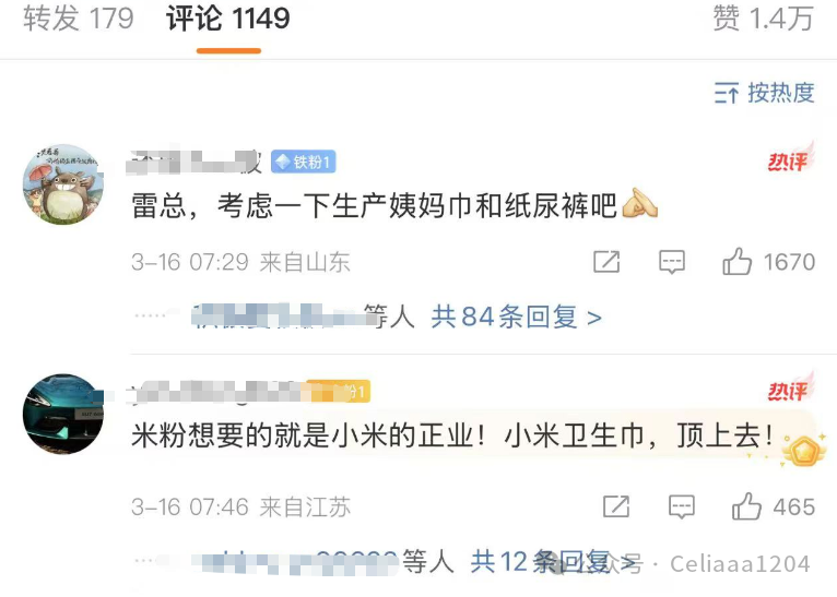 After the 3/15 Gala program by China Central Television exposed the shocking practice of inferior sanitary pads being refurbished and remarketed, a large number of netizens flooded the Weibo comments section of Lei Jun, founder of Xiaomi, urging the company to enter the sanitary pad industry.