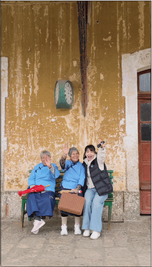 后来,它吸引了不少游客前来打卡,小彭在这里偶遇了身穿中式服装的时尚“奶奶团”。黄墙红瓦的站房留下斑驳的痕迹,静止的挂钟目睹时光的流逝,碧色寨站充满岁月的厚重感,是历史与浪漫的交叉口。