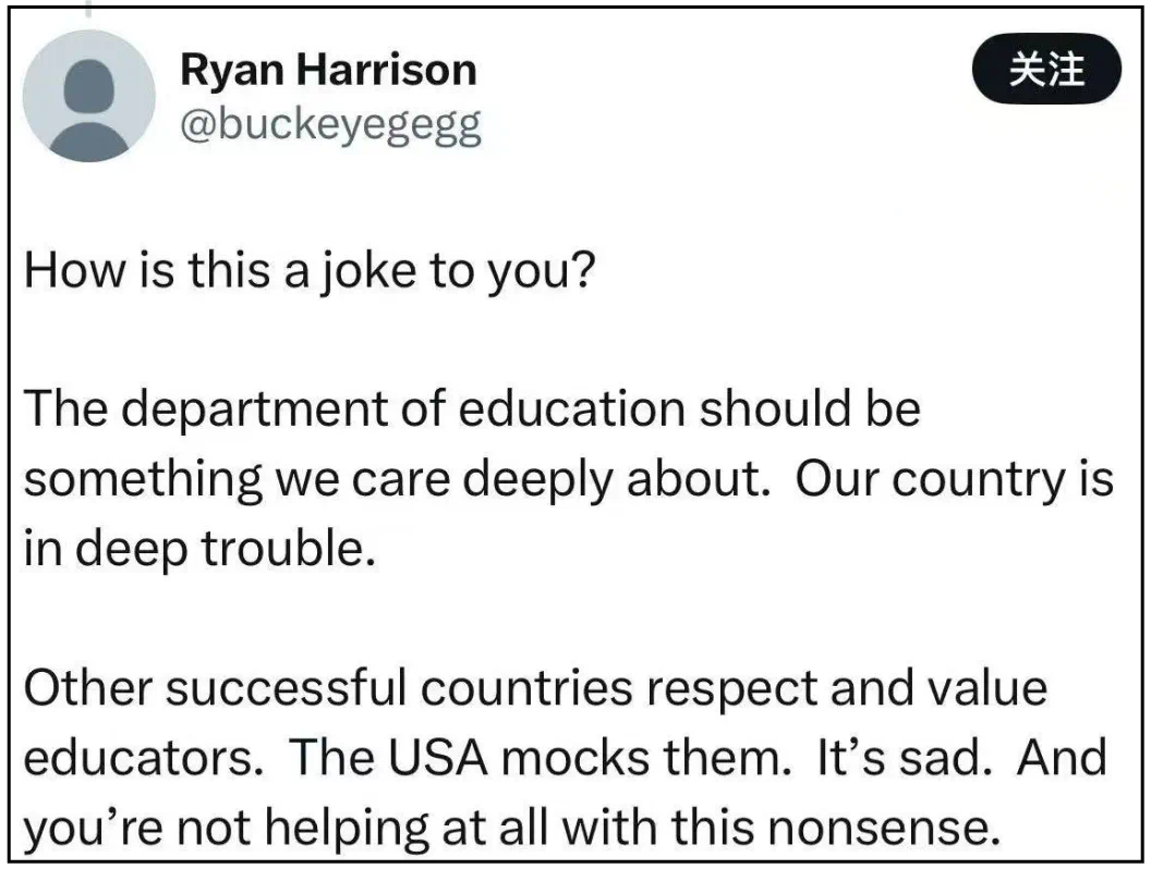 还有网友认为,成功的国家尊重并重视教育工作者,而美国却嘲笑他们。