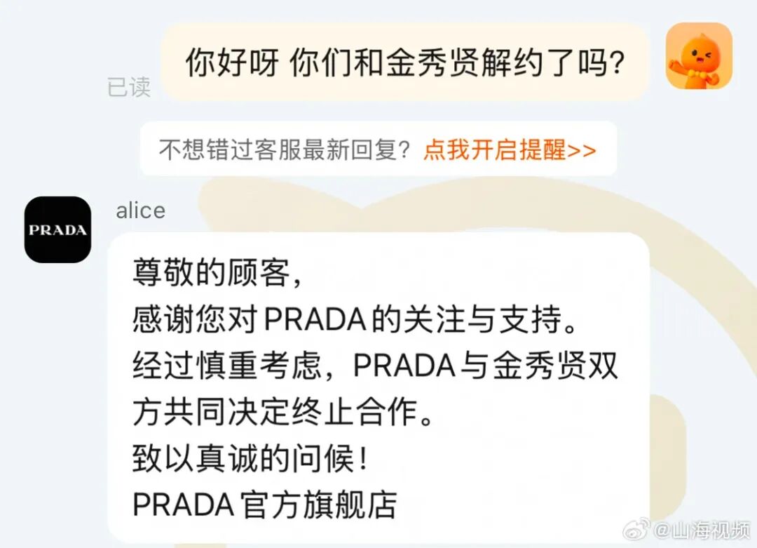 据悉,3月12日,Prada已经迅速与金秀贤解约,合作时间不足四个月。