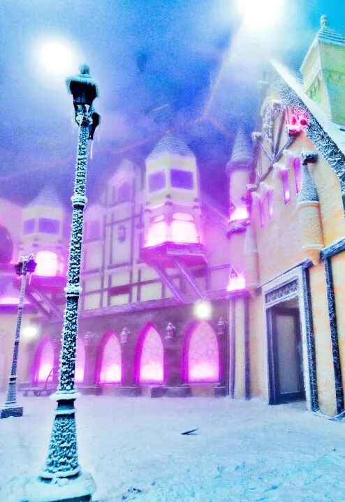 在冰雪映衬下美轮美奂的灯光