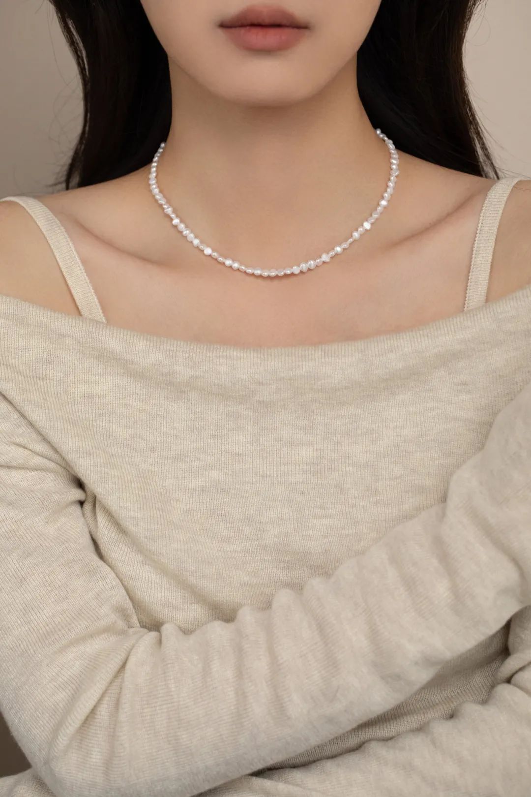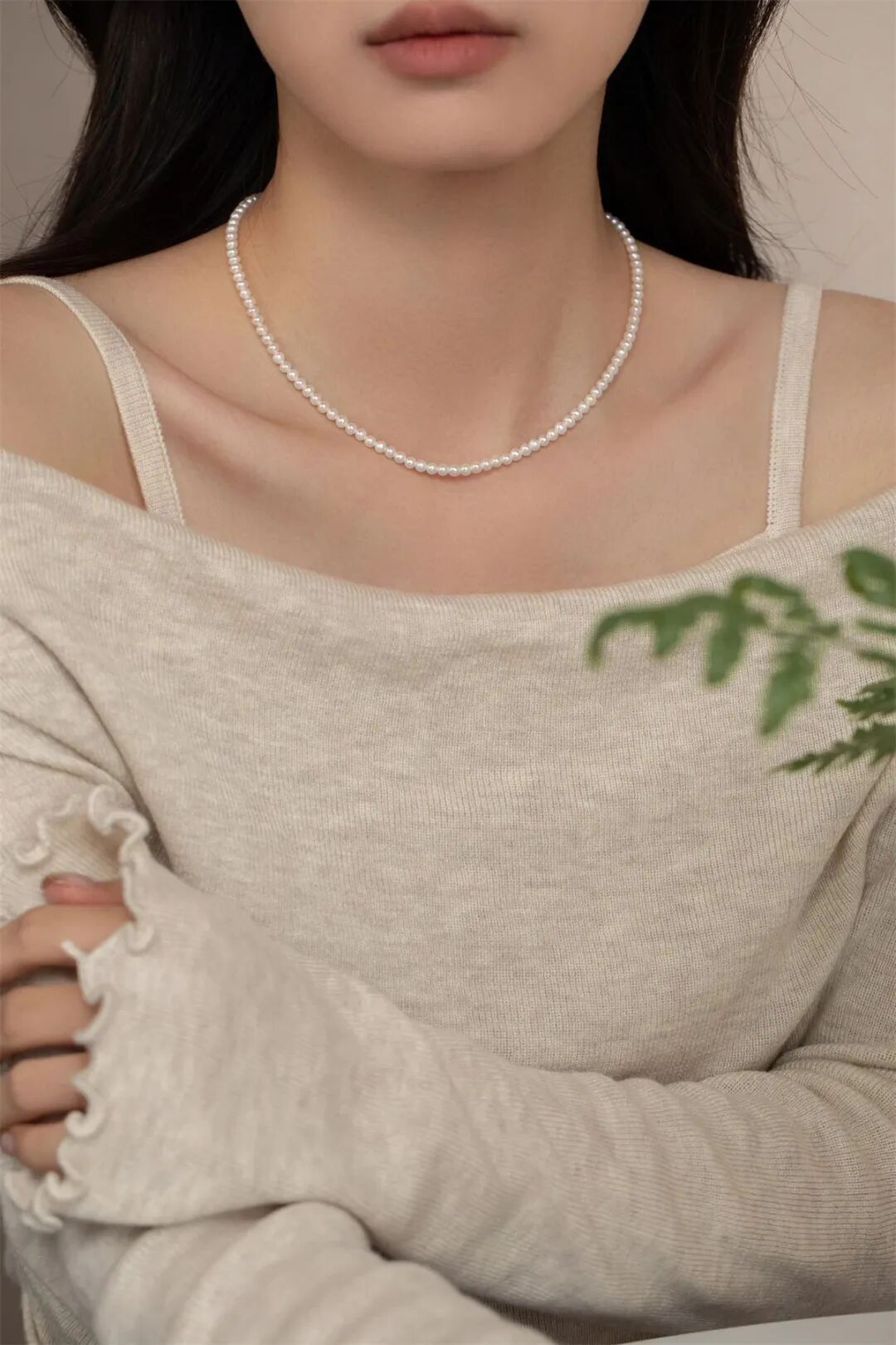 小米珠项链小巧玲珑,充满灵动之美,近正圆的小米珠,散发高级冷白光,莹润动人。