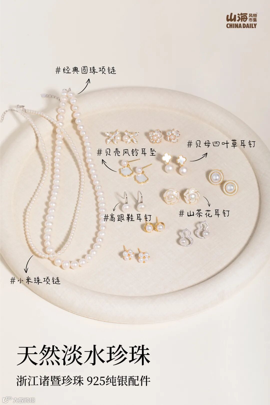 今天我们为大家带来了山海风物市集的爆品之一,由浙江诸暨的天然淡水珍珠打造的珍珠饰品系列。