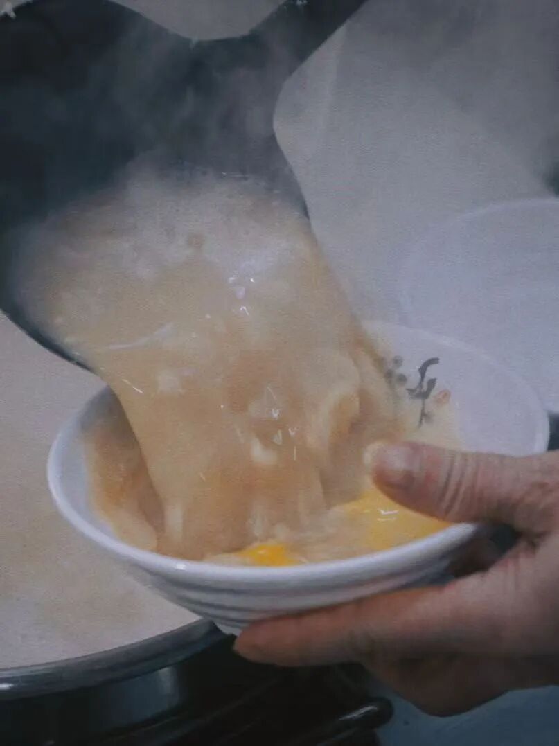 很多手艺好的花生汤店都会出售这样的半成品汤底,加糖加水熬煮,就是我们喝到的花生汤了。糖的量很有讲究,能收紧汤底,让花生仁刚好浮在水面上,说明甜度刚好。