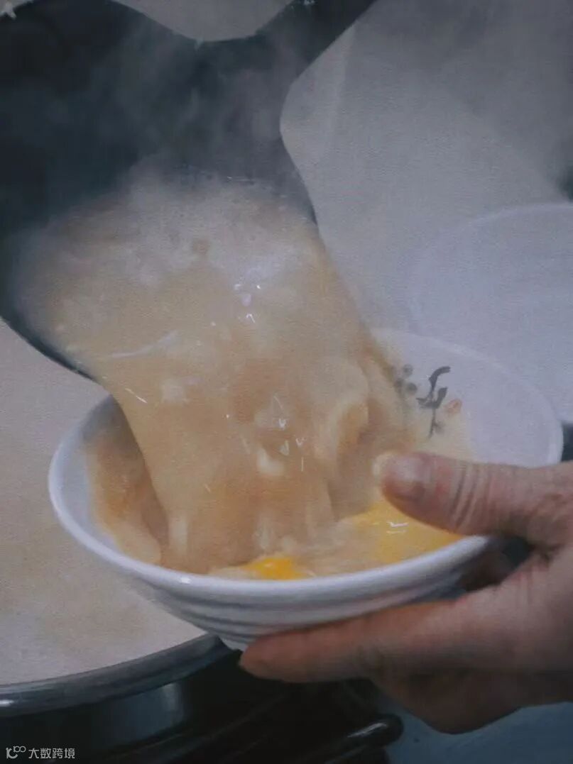 然后上明火熬煮花生仁,乳白的一大锅,等美好的油脂浮至汤面,花生仁颗粒完整,但又能一捻即碎,汤底便制成了。