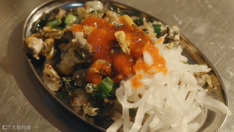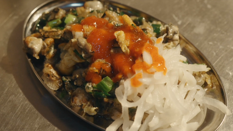 The Dongshi-style version stir-fries oysters with sweet potato starch and garlic chives, then scrambles in eggs. Served with sweet chili sauce and pickled radish, it's famous for its briny juiciness, crispy chives, and rich, savory-sweet balance.