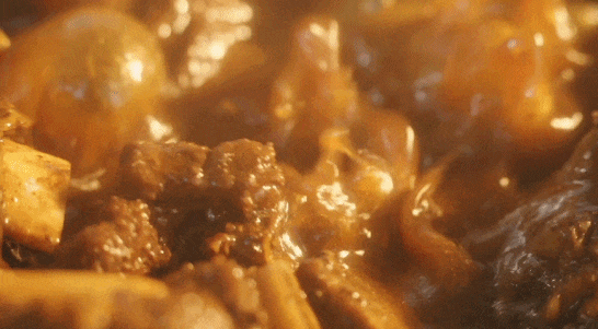 牛排在各种香料调制的汤汁中炖煮多时,已经非常入味。肥瘦相间、软烂脱骨的牛排是最好吃的。咖喱和牛肉的搭配很经典,即便不爱牛肉的人也很难抗拒。