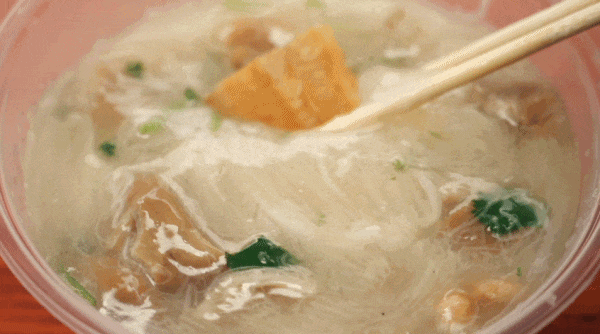 面线糊浓稠的汤底,就是用海鲜高汤加地瓜粉勾制的,这样才能让面线如游丝般均匀分布在汤底中。当地人最喜欢加醋肉和卤大肠。