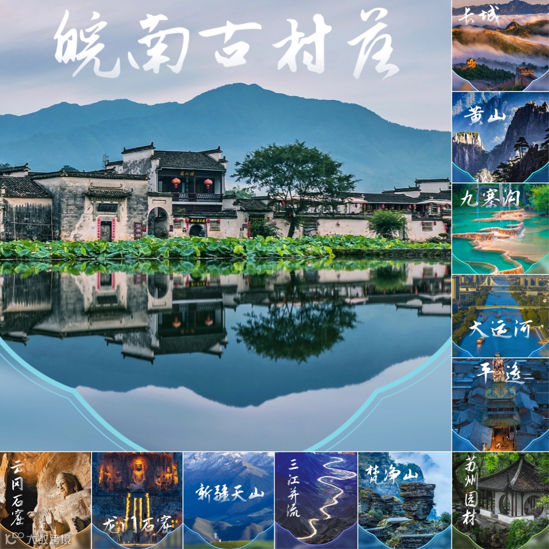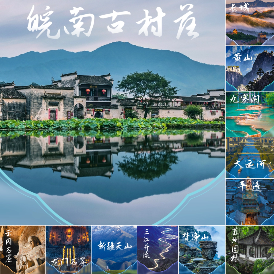 四川九寨沟、大熊猫栖息地、皖南古村落、黄山
