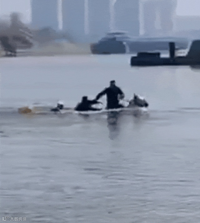 At the same time, Liu Hangzhou, a 57-year-old winter swimming amateur and military veteran, swam to assist from behind, helping to push the man toward safety.